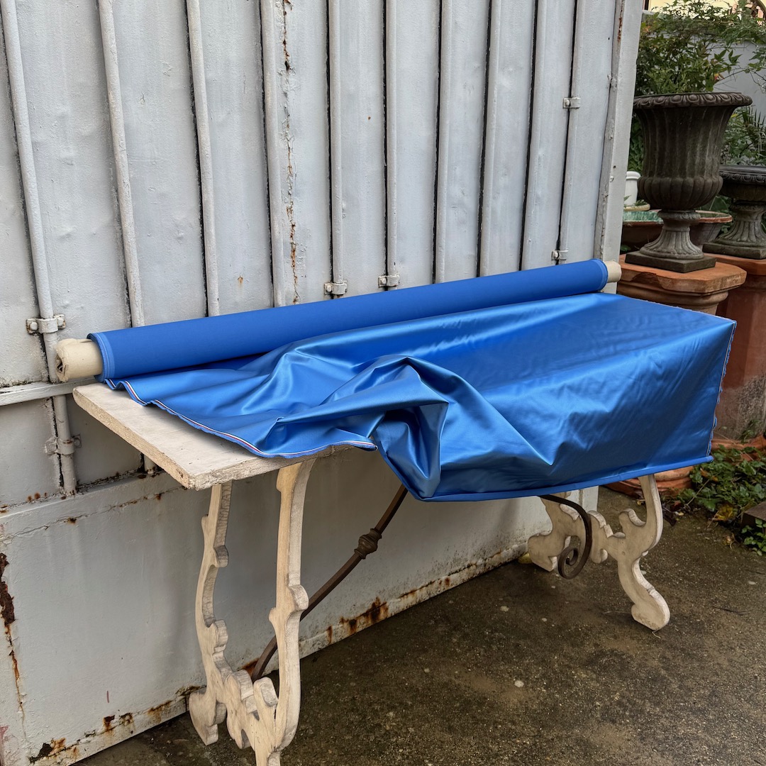 Raso di Seta Blu Ottanio a Doppio Tessuto