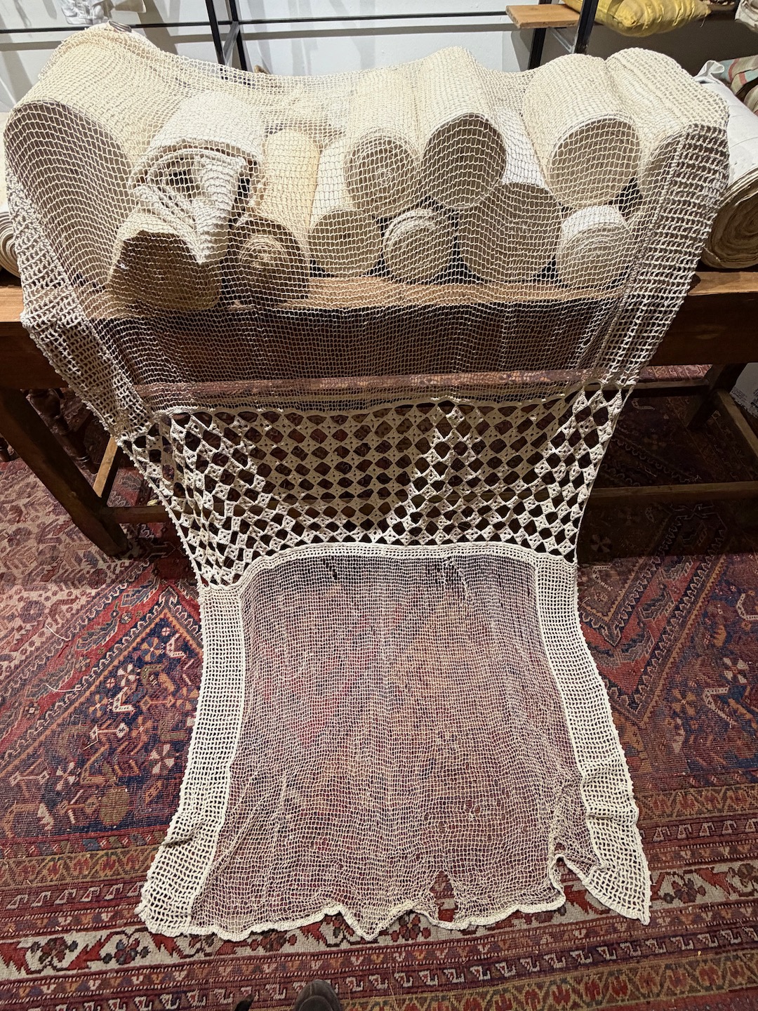 Tenda filet con ricami geometri in cottone panna. Italia sec. XIX
