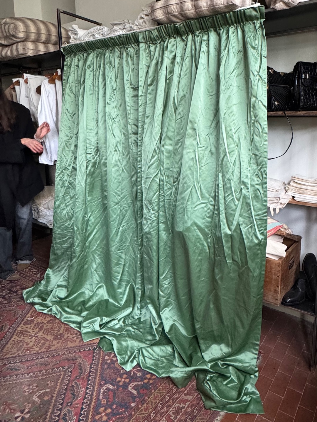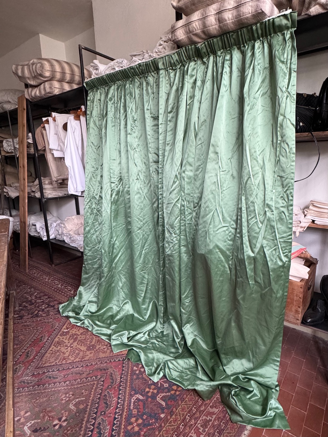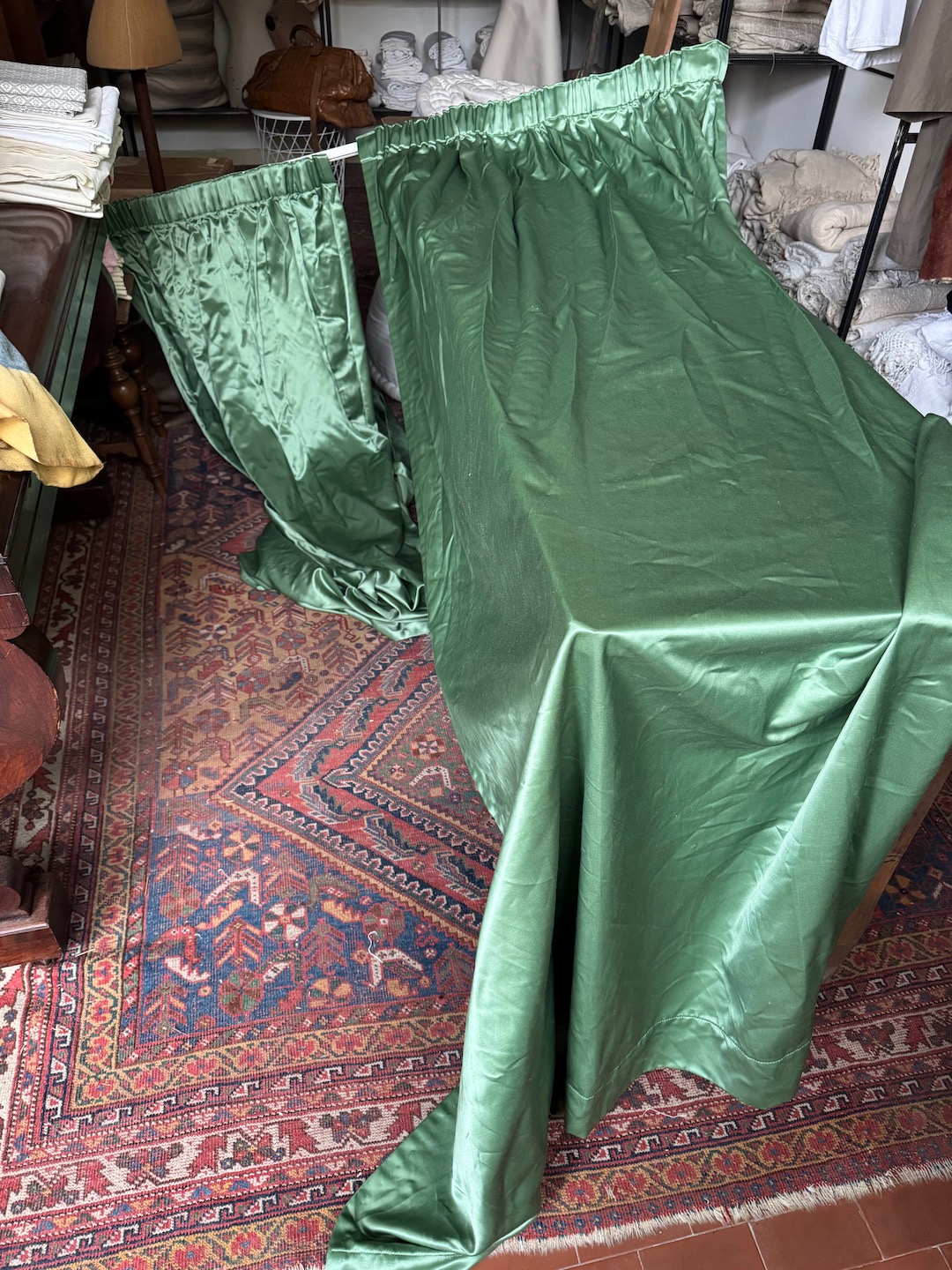 Tende in raso di seta verde smeraldo. Italia, sec. XX