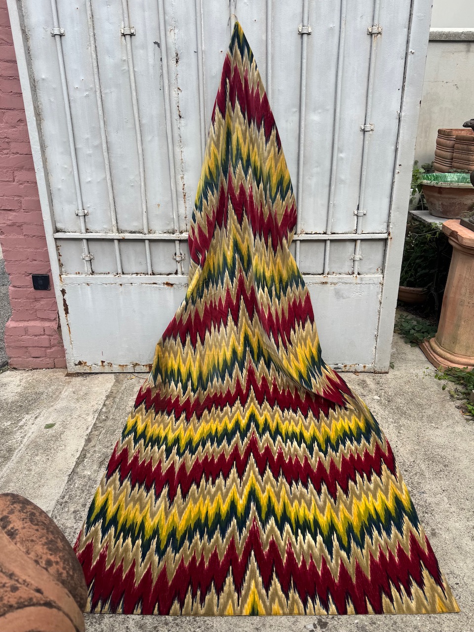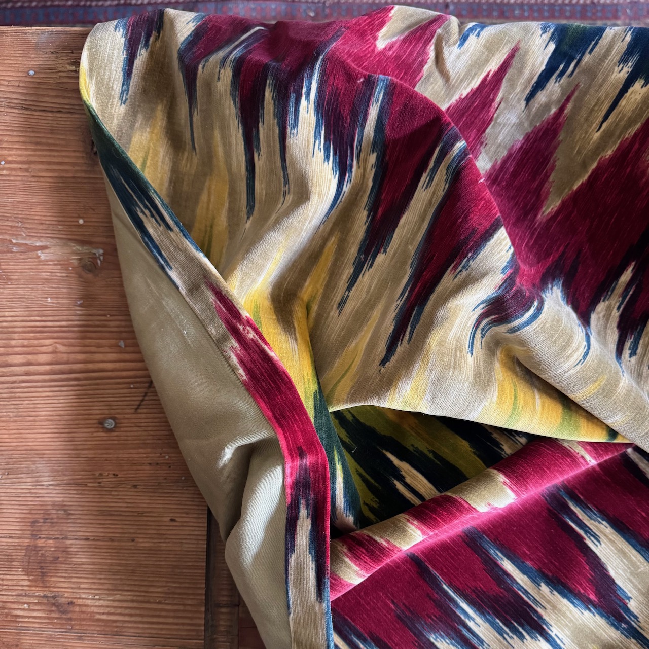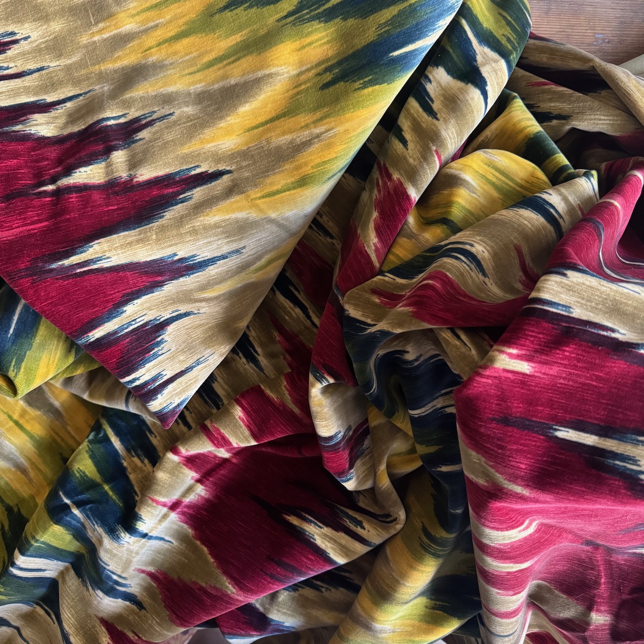 Tenda di velluto fiammato fiorentino foderato in rasatello di cotone giada. Italia, sec. XX