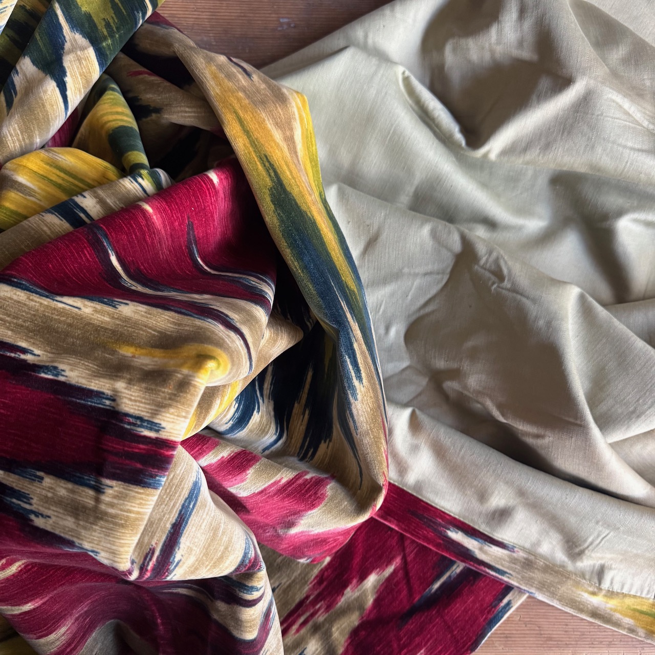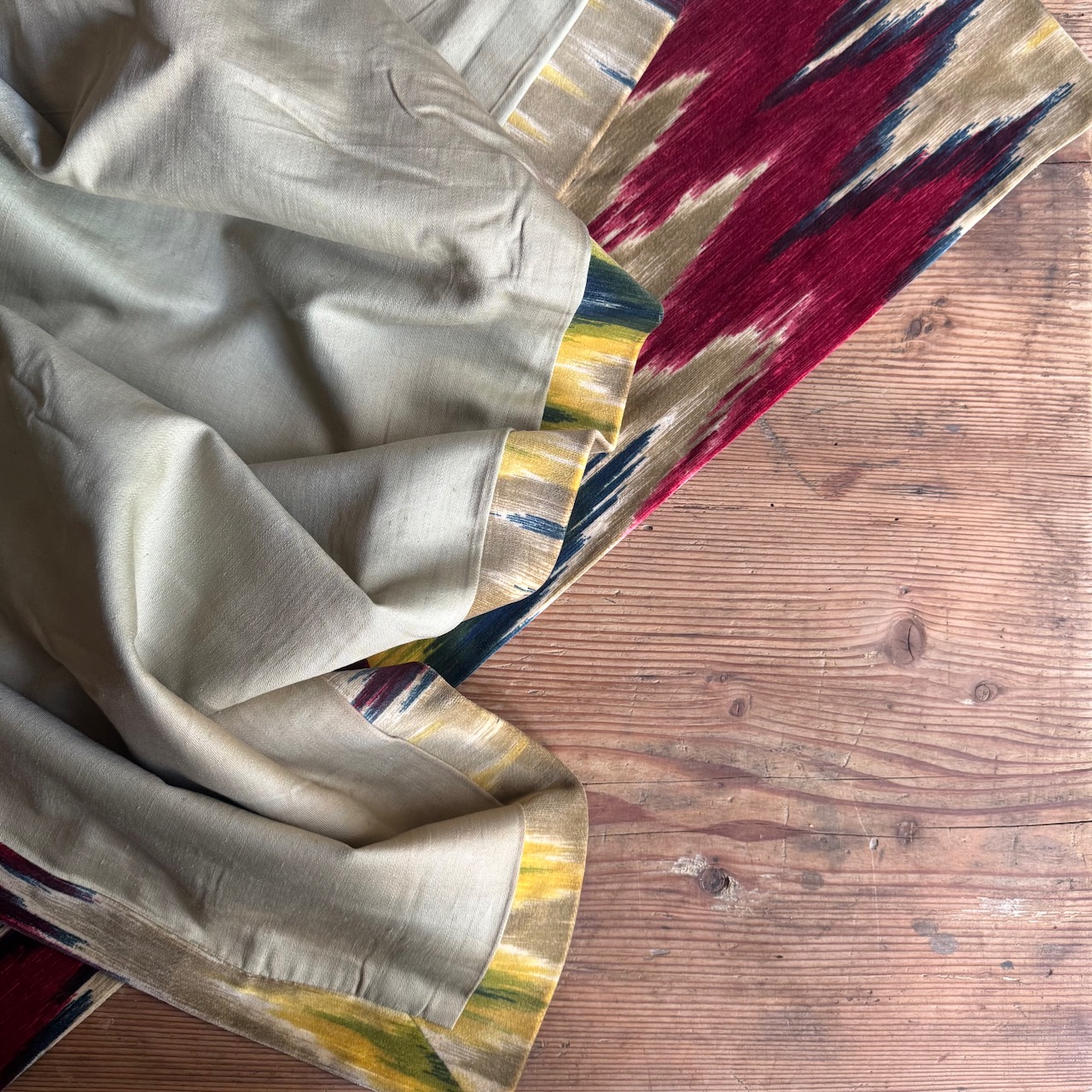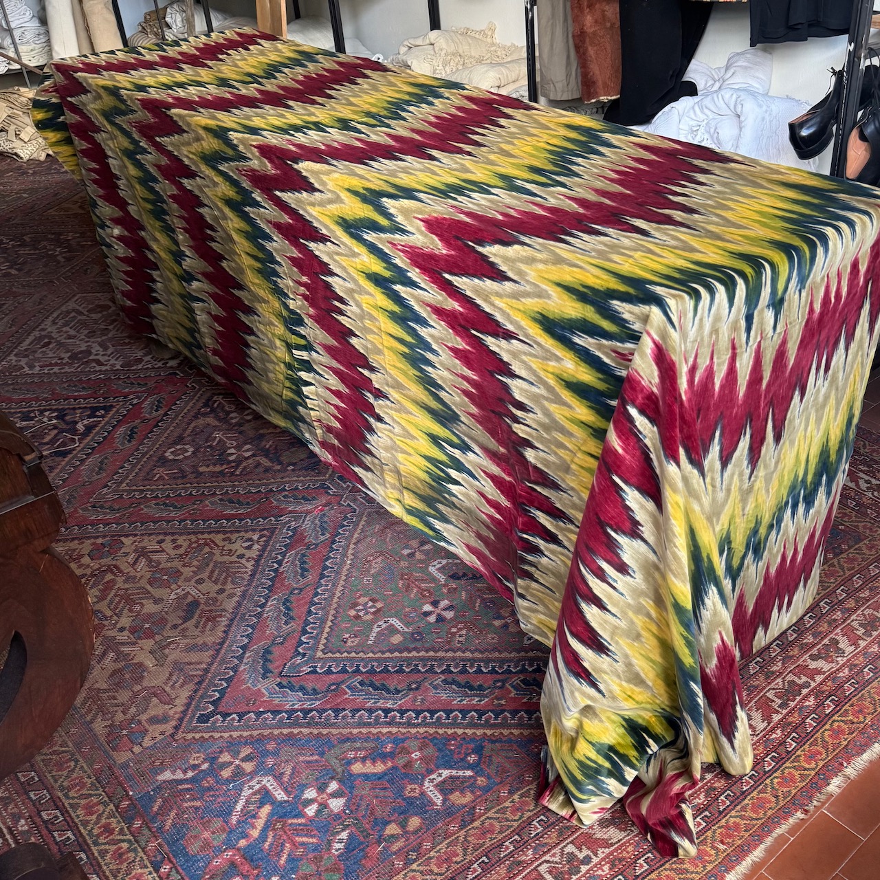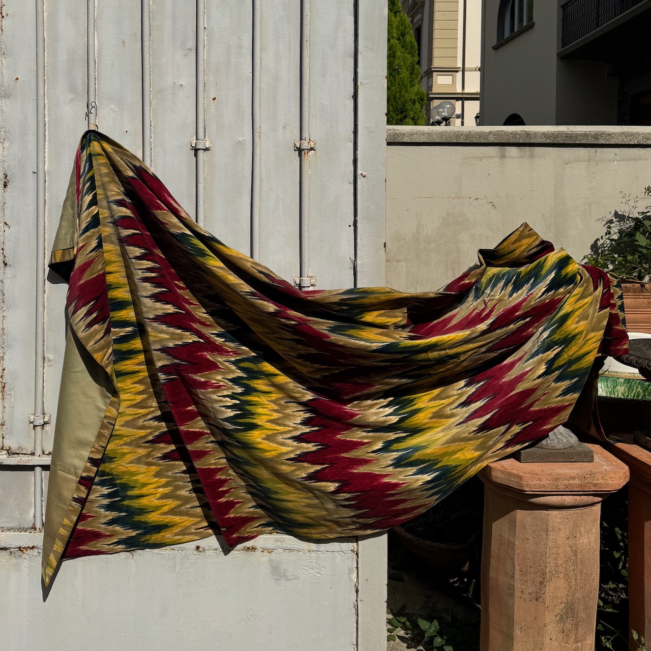 Tenda di velluto fiammato fiorentino foderato in rasatello di cotone giada. Italia, sec. XX