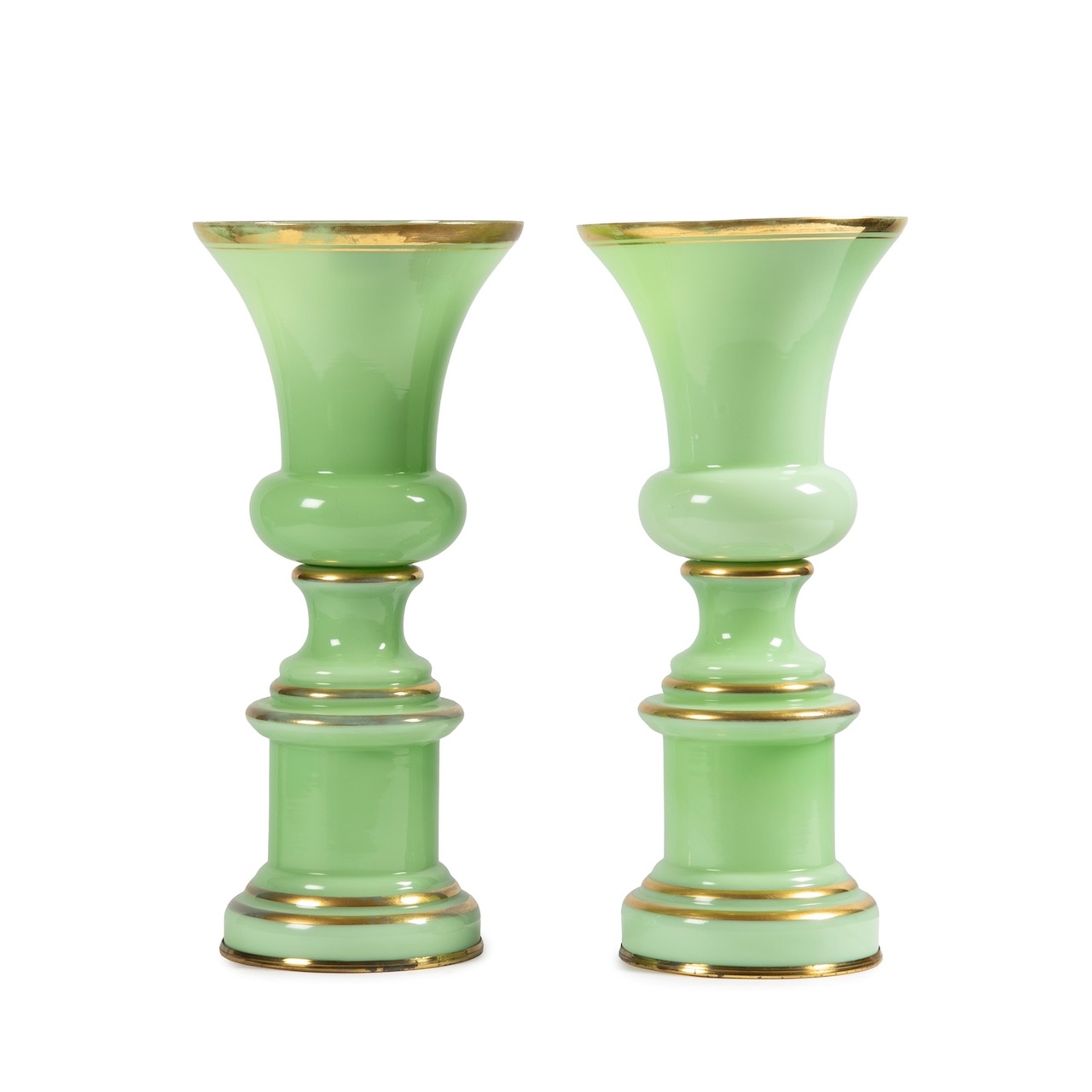 Coppia di vasi a coppa, berillo con rigo oro. italia, sec. XX